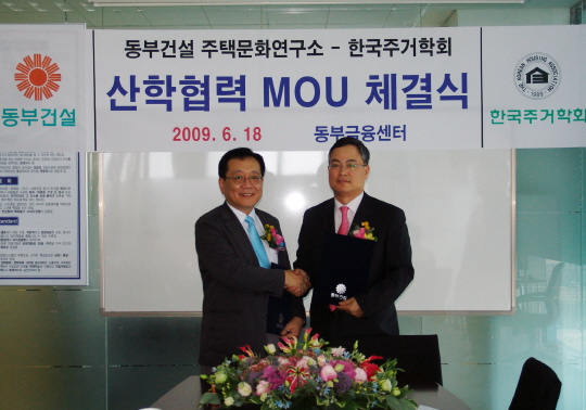 µ¿ºÎ°Ç¼³Àº 18ÀÏ Çѱ¹ÁÖ°ÅÇÐȸ¿Í ¡®ÁְŹ®È ¿¬±¸¡¯¿¡ ´ëÇÑ ¿¬±¸Çù¾àÀ» ü°áÇß´Ù. µ¿ºÎ°Ç¼³Àº Çѱ¹ÁÖ°ÅÇÐȸ¿ÍÀÇ ¿¬±¸Çù¾àÀ» ÅëÇØ ¹Ì·¡ ÁÖ°Å ¹®È Æ®·»µå¿¡ ´ëÇÑ ±íÀÌ ÀÖ´Â ¿¬±¸¸¦ ÁøÇàÇÒ °èȹÀ̸ç, ¿¬±¸ °á°ú¸¦ Åä´ë·Î ¼¾Æ®·¹ºô »óǰ°³¹ß¿¡ ´õ¿í´õ ¹ÚÂ÷¸¦ °¡ÇÒ °èȹÀÌ´Ù. µ¿ºÎ°Ç¼³Àº À̳¯ ¿¬±¸ Çù¾à ü°á½Ä¿¡¼ µ¿ºÎ°Ç¼³ ÁÖÅù®È¿¬±¸¼ÒÀÇ ¿¬±¸ÃѰýÀÚ¹®À§¿øÀ¸·Î ÃÖÀçÇÊ Çѱ¹ÁÖ°ÅÇÐȸ ȸÀå(¼¿ï´ë °ÇÃà°ú ±³¼ö)À» À§ÃËÇß´Ù.